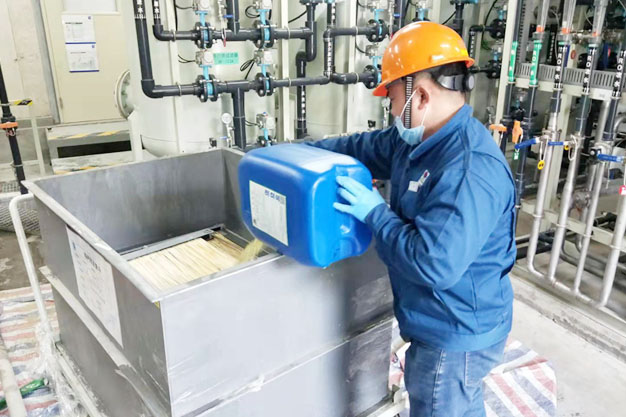 膜系統處理藥劑膜系統處理藥劑是一系列專為RO反滲透膜、超濾膜等系統,根據膜特性開發出的功能型藥劑,添加后起到預防膜表面結垢、抑制微生物、殺菌、緩解膜污染的效果。可以大幅延緩膜系統的停機清洗周期,穩定水量和水質。