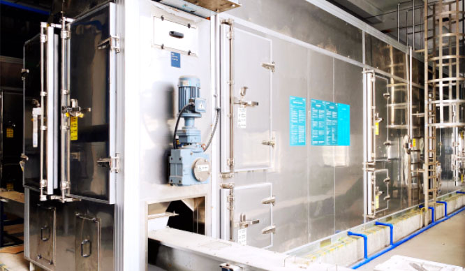 2)熱干空氣(熱風)從網帶底部送入,直接對污泥進行干化;